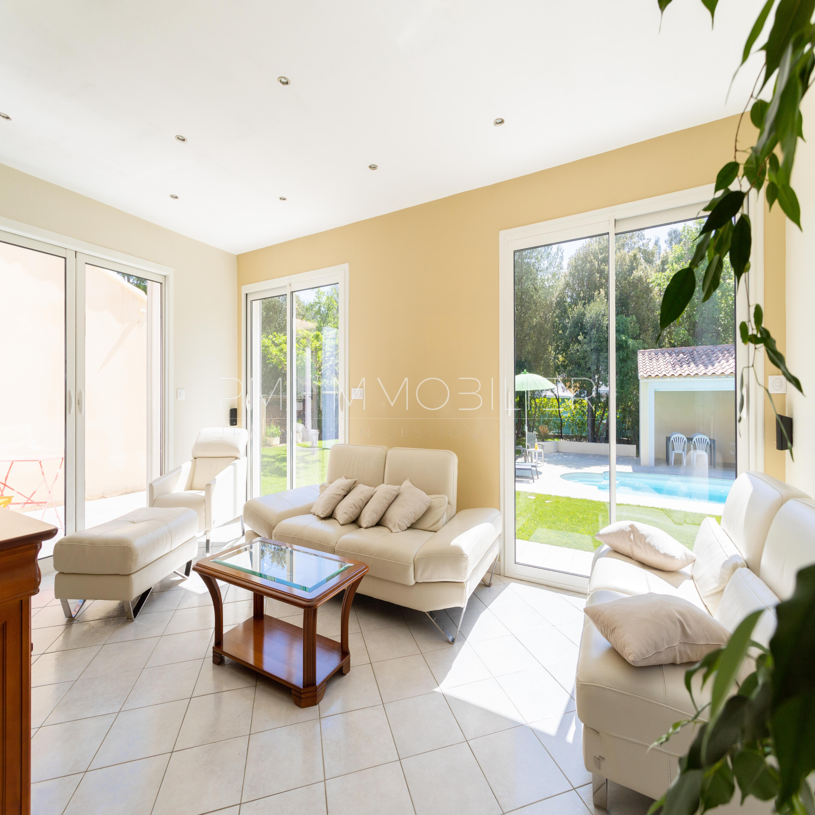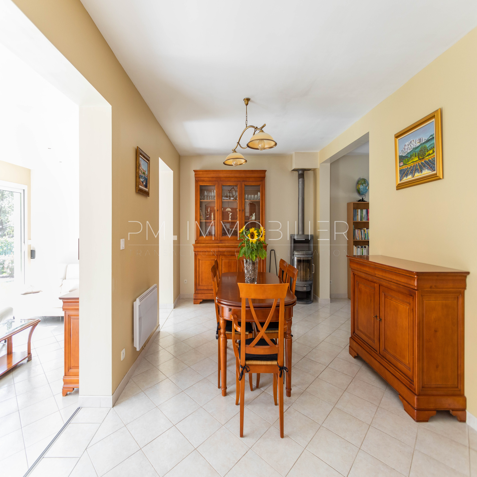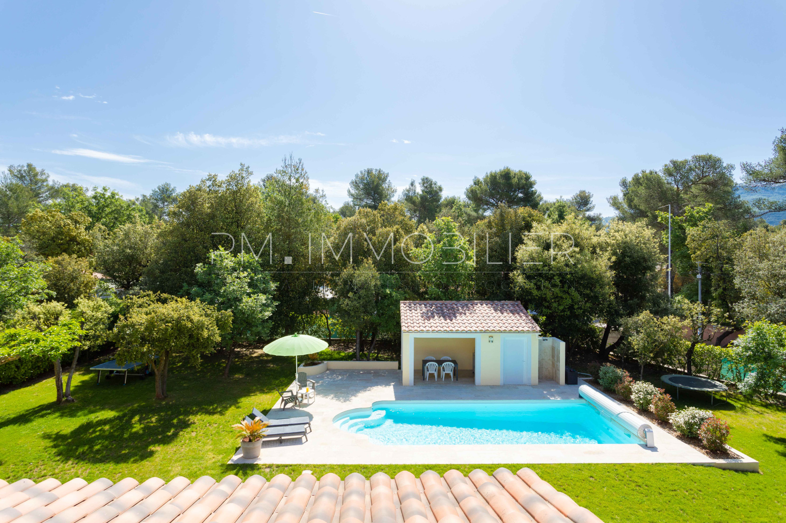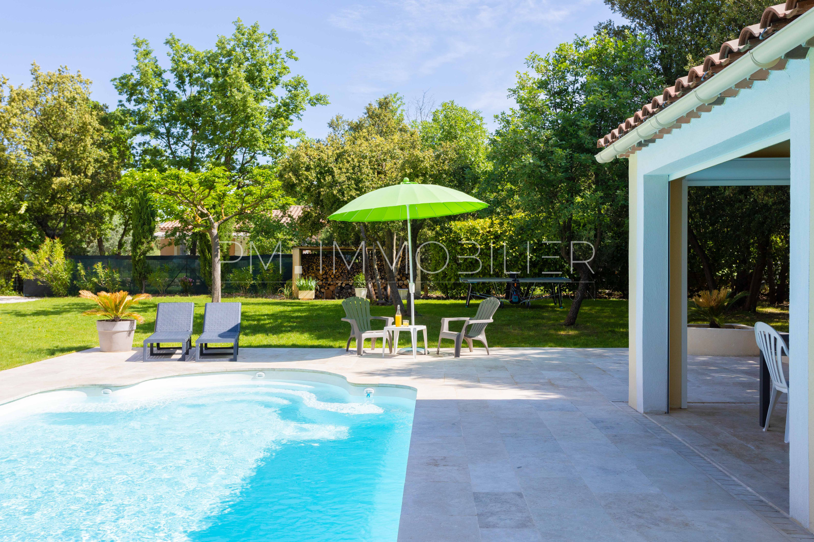 A l'extérieur, un grand jardin très bien entretenu invite à la détente : Terrain de boules, terrasse, pool house... grande piscine au sel de mer entourée d'une large plage en travertin de 80m².