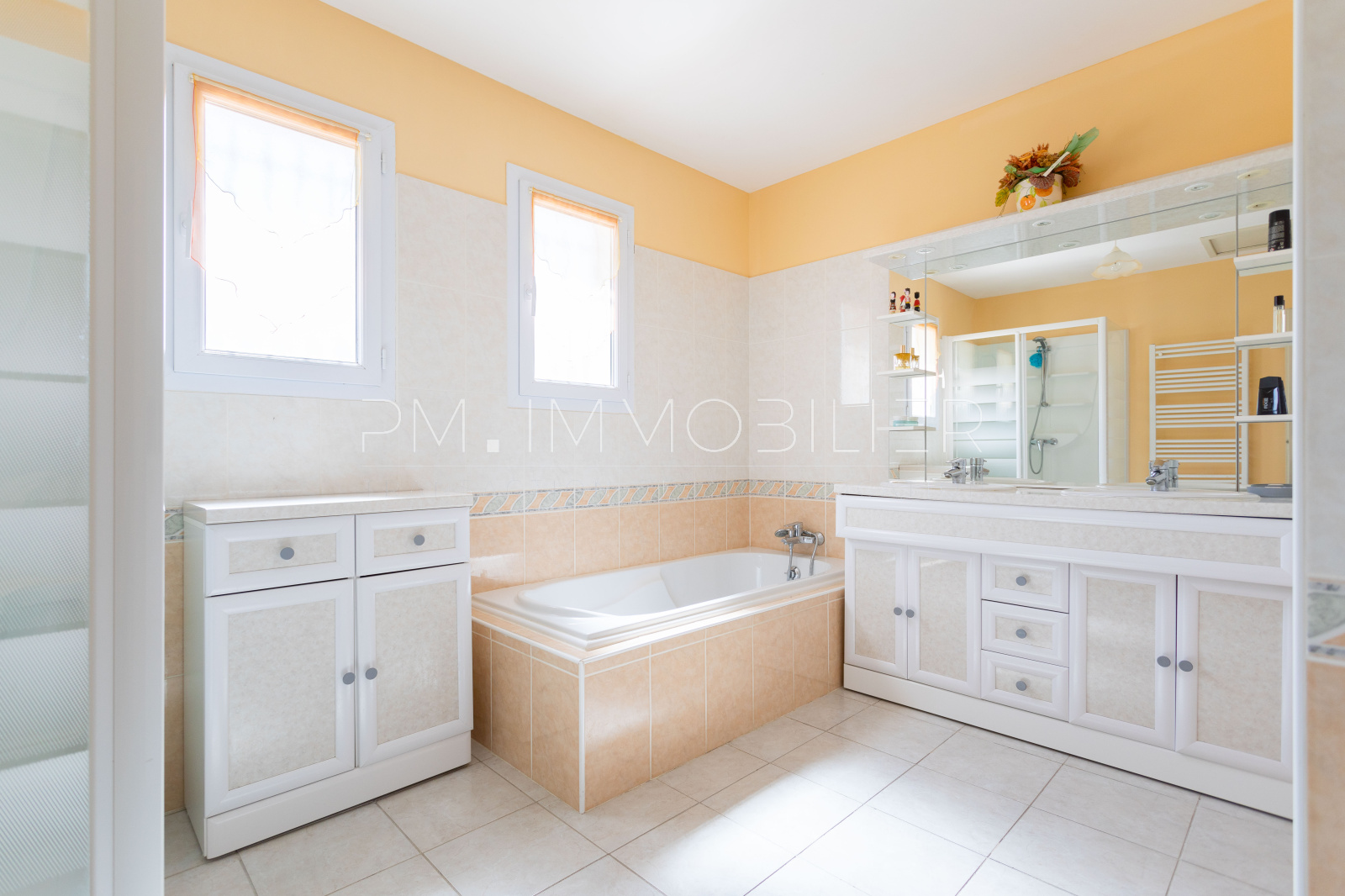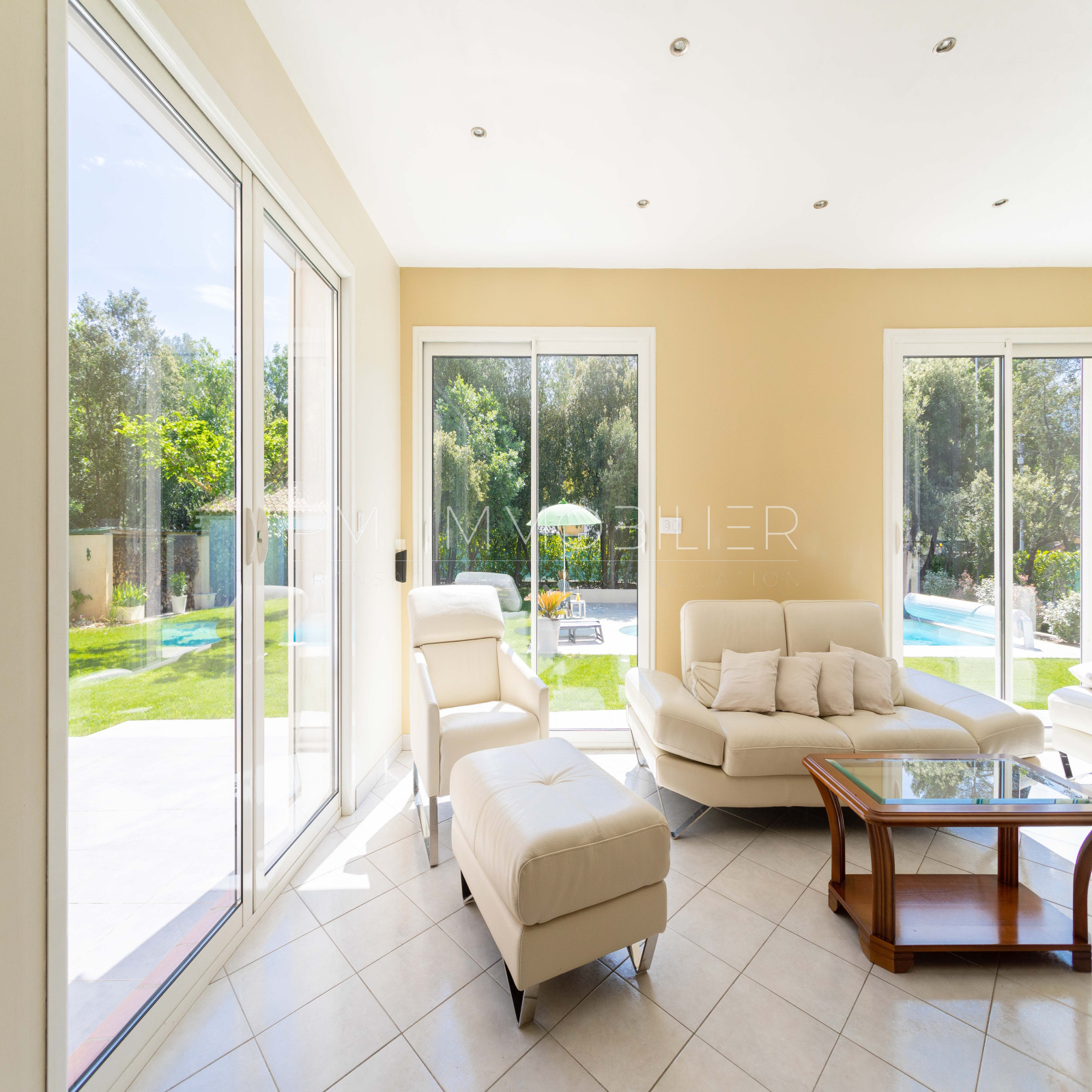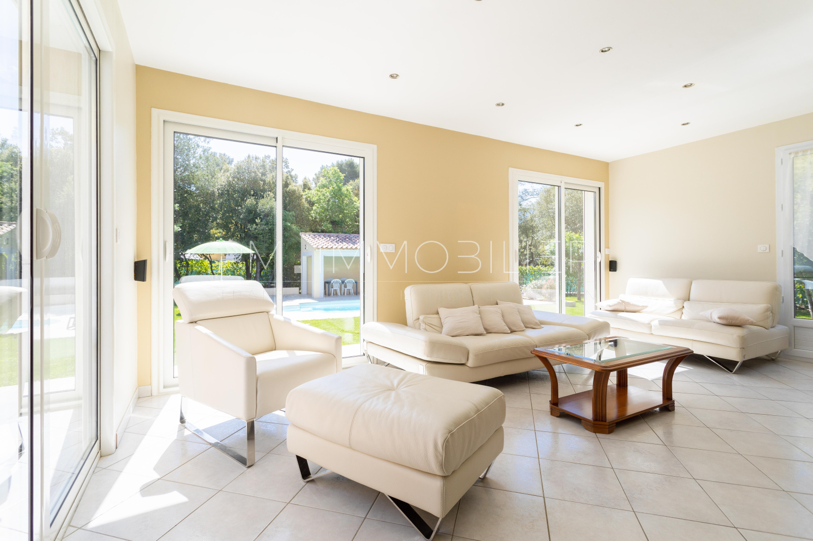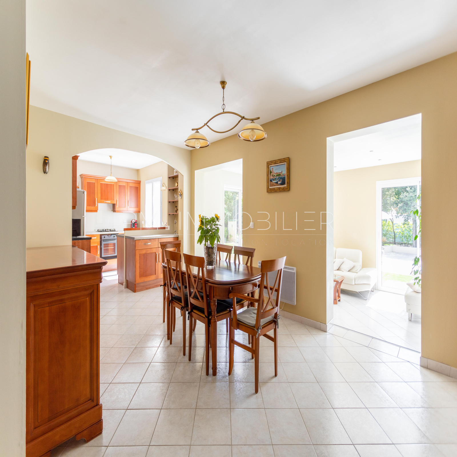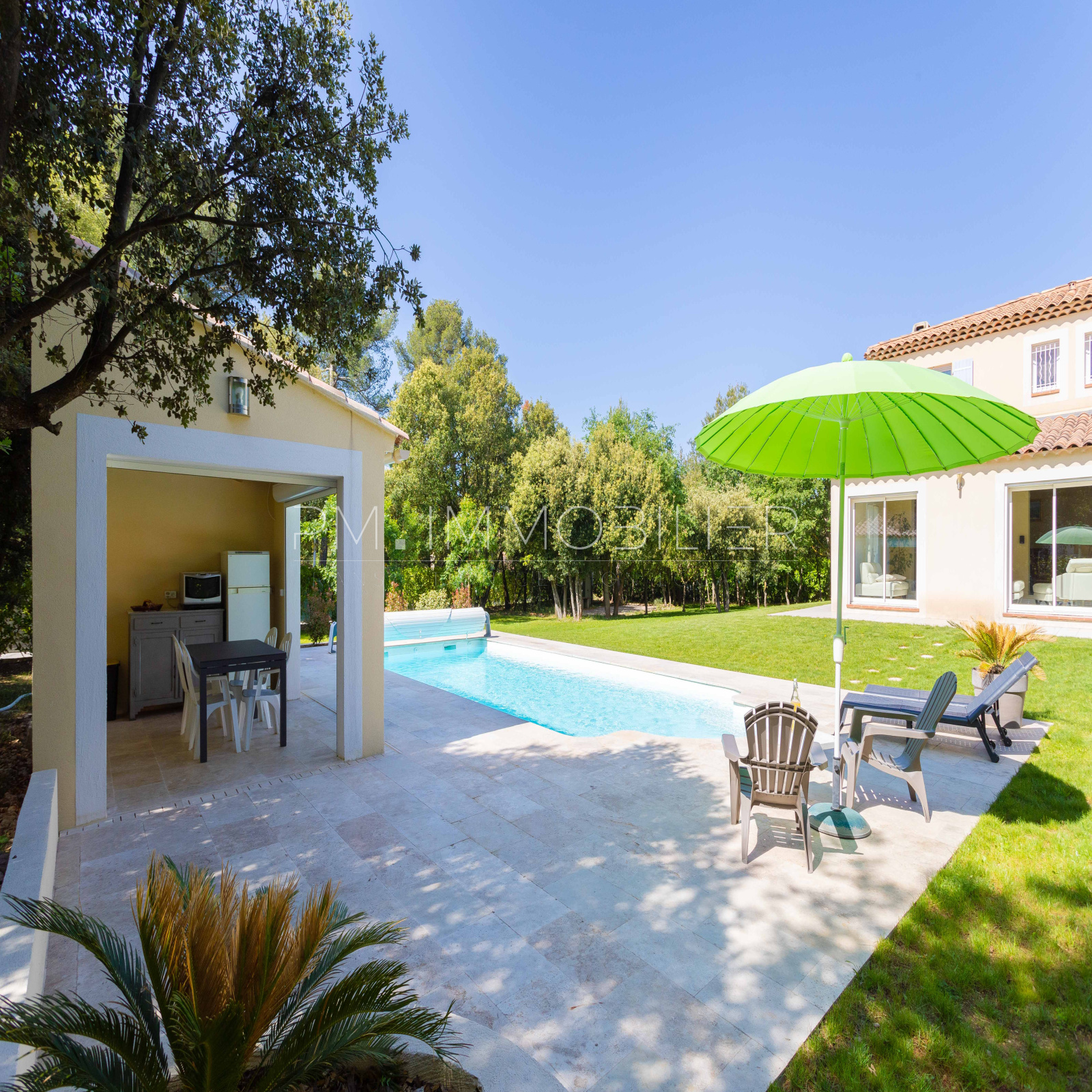 A l'extérieur, un grand jardin très bien entretenu invite à la détente : Terrain de boules, terrasse, pool house... grande piscine au sel de mer entourée d'une large plage en travertin de 80m².