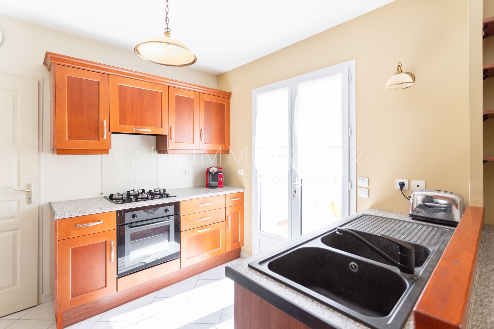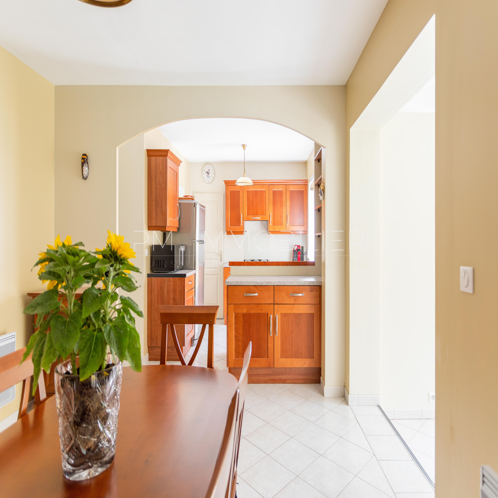 VENDU - Charmante et fonctionnelle à la fois, dans un magnifique lotissement, la maison se tient sur deux niveaux, largement tournée vers la nature. Le rez-de-jardin, avec ses larges ouvertures travaillées tels des cadres sur la nature environnante, invite à la contemplation depuis le salon et la salle à manger. Cette grande pièce de vie baignée de lumière est réchauffée par un poêle à bois. Plus loin, une cuisine familiale s'ouvre elle aussi sur la pièce de vie et bénéficie d'un accès au cellier et au garage. Une chambre et des Wc complètent ce niveau.