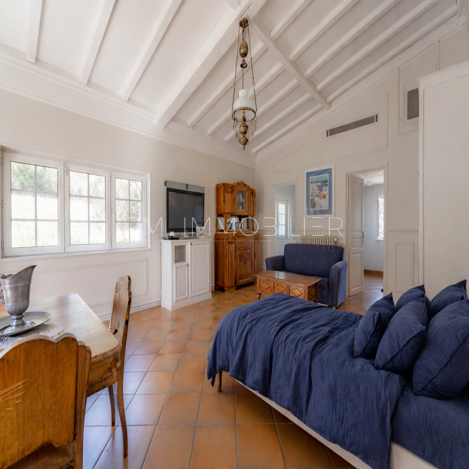 Elle dispose également d’un grand studio indépendant, pouvant accueillir famille, amis ou être exploité selon vos besoins. Accessible aussi bien depuis la maison que par une entrée extérieure, il bénéficie de sa propre cuisine et de ses pièces d’eau, garantissant une parfaite autonomie.