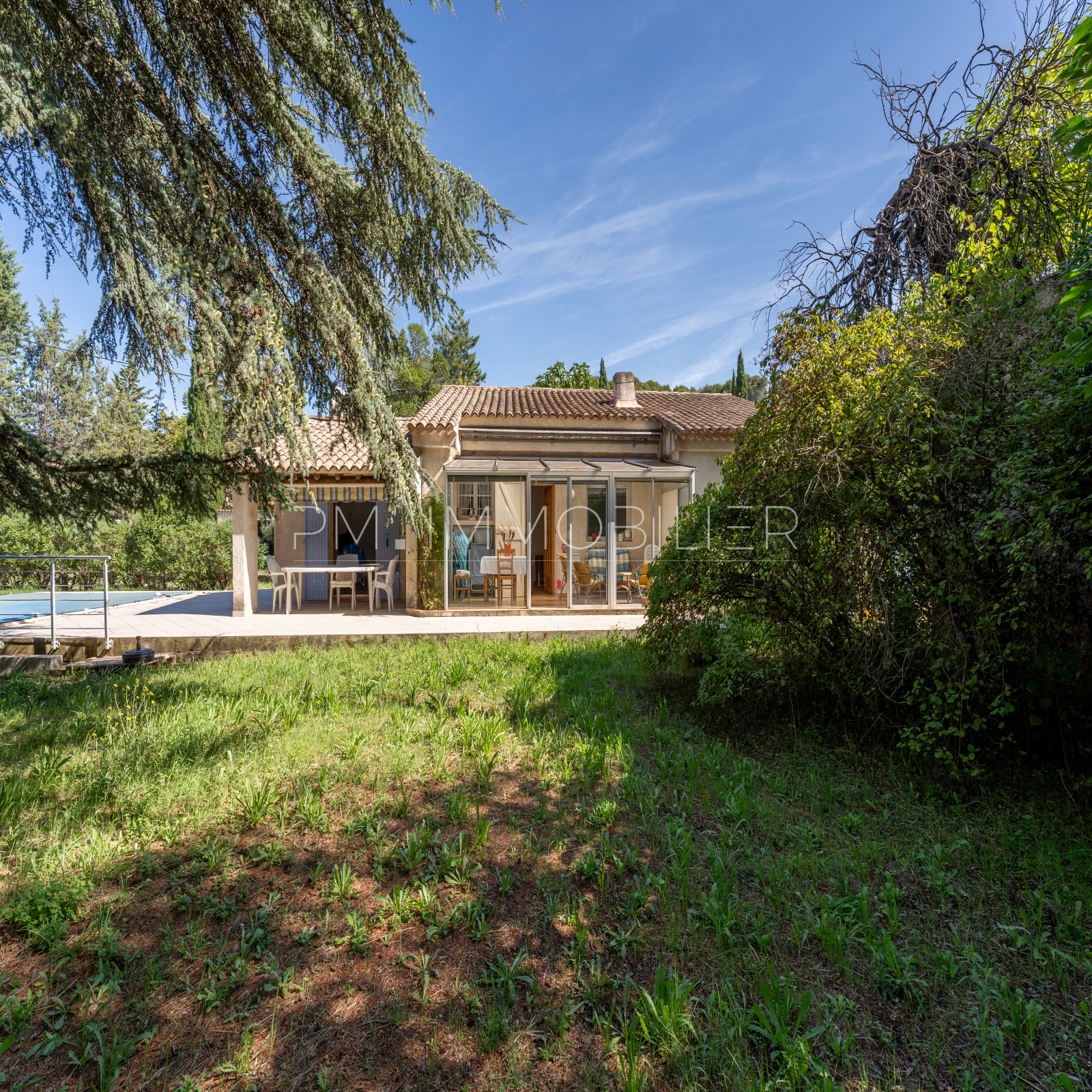 Édifiée sur un terrain arboré et constructible de 2 000 m², cette maison d’environ 108 m² habitables offre un cadre de vie paisible et verdoyant, au cœur du Parc Naturel Régional du Luberon.